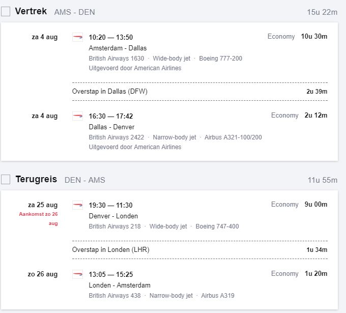 Wat zijn die mooie prijzen naar Denver en voor wanneer? Wij willen 30/6 of 1/7 naar Denver en 24 of 25 juli terug. Mag vanaf Ams, Dus od Brussel maar hebben nog niks moois gezien (max 1 overstap) voor minder dan € 650,-.