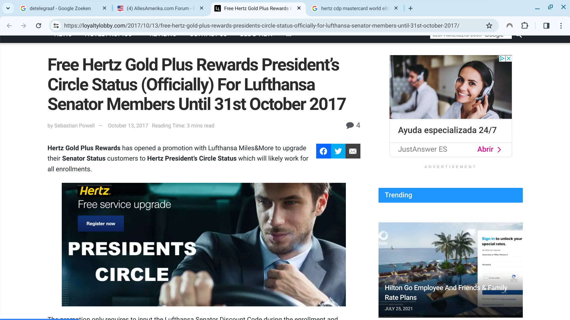 Degenen hier die in october 2017 via de Lufthansa " miles and more " actie gekoppeld aan Mastercard President Circle hebben bereikt hebben die status zo lang als het duurt