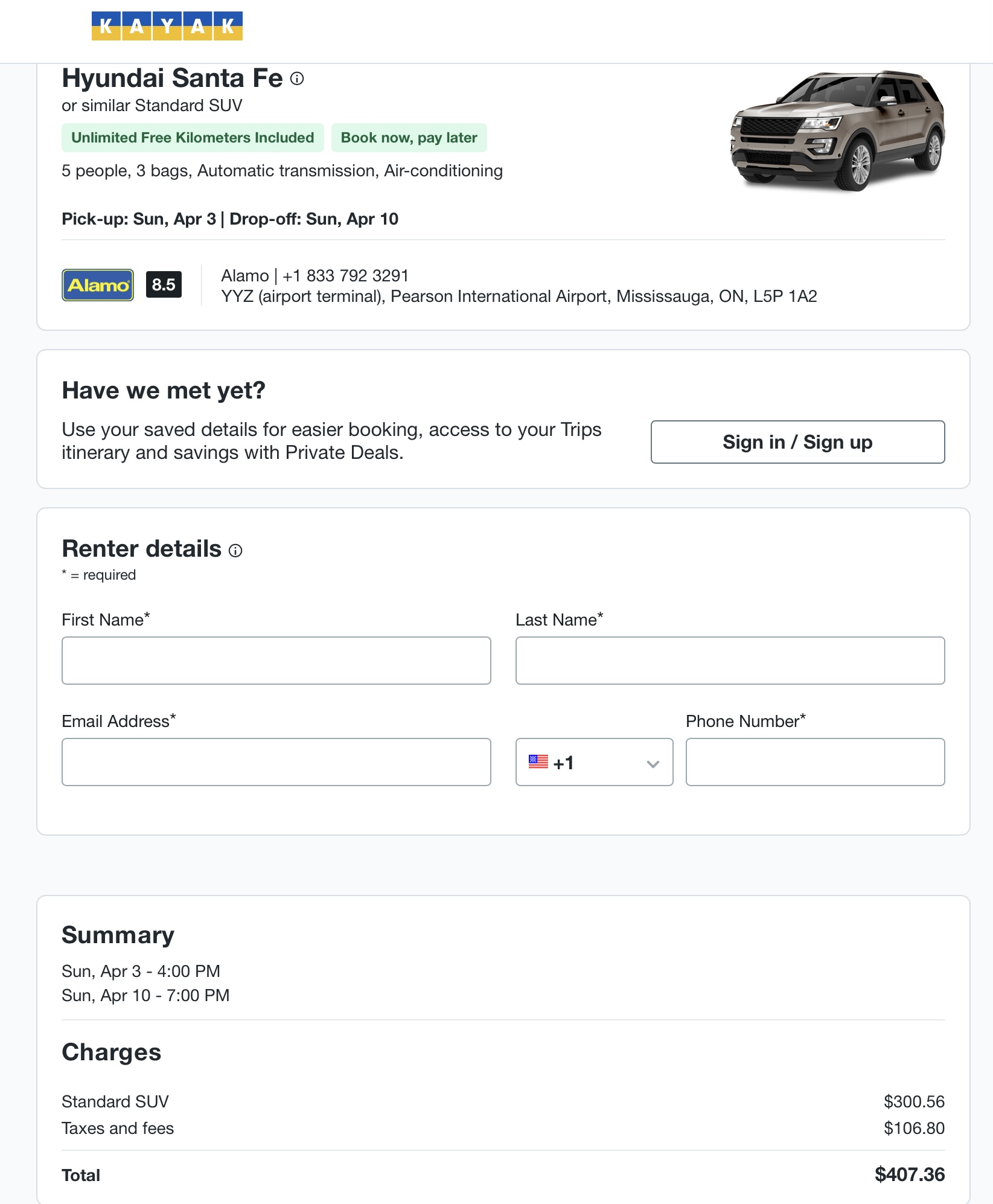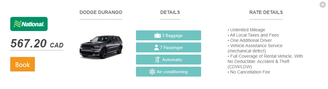 Valt wel mee, toch? Omgerekend 410 euro. Een Midsize SUV is nog iets goedkoper, 356 CAD