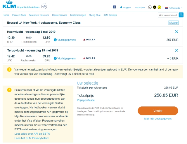 Boeken bij Delta betekent dat je geen extra kosten hebt voor creditcard betalingen e.d.TICKETS MUST BE ISSUED ON/BEFORE 15SEP 18.