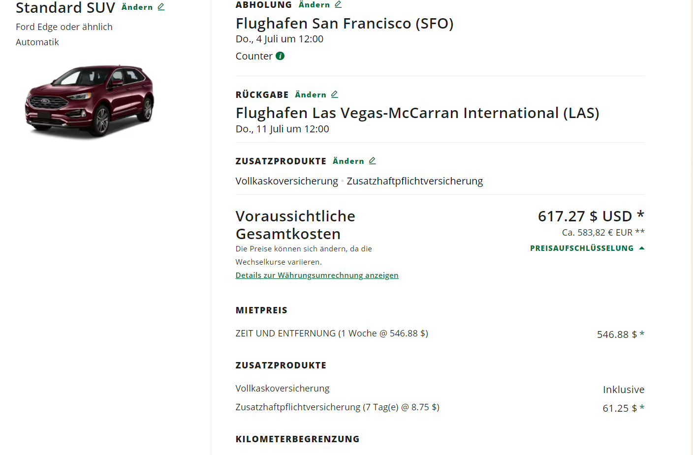 Bij deze boeking mis je de aansprakelijkheid verzekering (zusatzhaftpflichtversicherung), die heb je wel nodig in de VS.