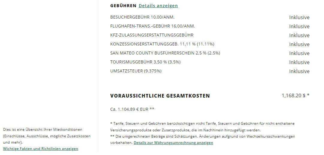 Het bizarre is dat op alle andere nationalcar sites en in de app komt telkens een drop fee bij 400 dollar! Maar hier niet. De kleine lettertjes zijn alleen in het duits. Dus dat wordt moeilijk ontcijferen. Ben beetje bang dat ik alsnog de 400 dollar drop fee zal moeten betalen bij afhalen of afzetten.