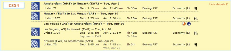 Thnx ik ga ermee aan de slag!Old Faithful schreef:Ik gebruik altijd http://matrix.itasoftware.com/ om te kijken wat mogelijk is.