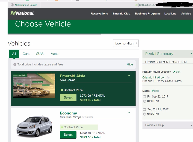 Daarnaast heb ik er ook een beetje een potje van gemaakt, de prijs was bij Alamo, niet National. Wat me trouwens wel weer bij National opvalt is dat full-size SUVs duurder zijn dan de premium/luxury types terwijl dit bij alle andere waar ik tot nu toe heb gekeken weer anders is. Wel scheelt het even een dikke 600 dollar met het betalen van een klasse lager dan je boekt, dat is wel netjes geregeld. Hertz / Avis probeer ik de laatste dagen ook de memberships op het Platinum niveau te krijgen maar de websites werken voor geen meter mee. Ik ga maar eens AMEX aanschrijven om te kijken of zij het kunnen regelen.
