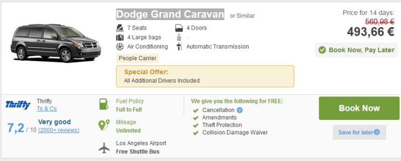 Als je in LA huurt hoef je niet extra te betalen voor additional drivers.