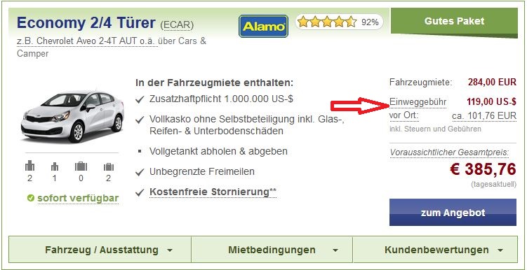 De prijs komt aardig overeen met het bedrag dat jij kreeg. Daar zit $119.00 drop off fee in.