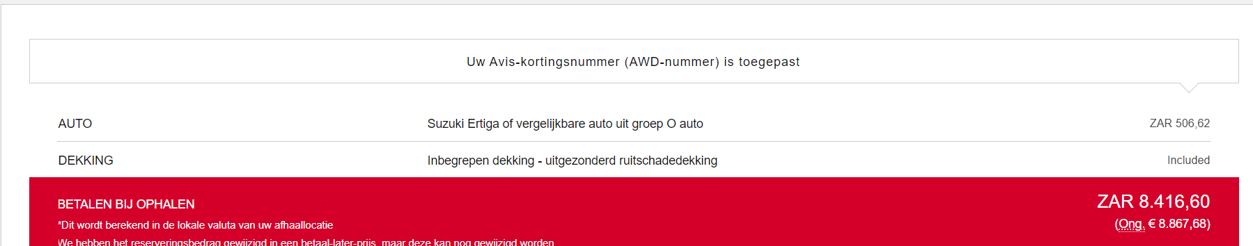 He @Trom nee dat rondje ga ik zeker nog maken, ook met de verschillende codes. Was nu vooral gewoon even verbaasd over het prijsverschil tussen ingelogd zijn met Preferred en niet, op Avis.com.