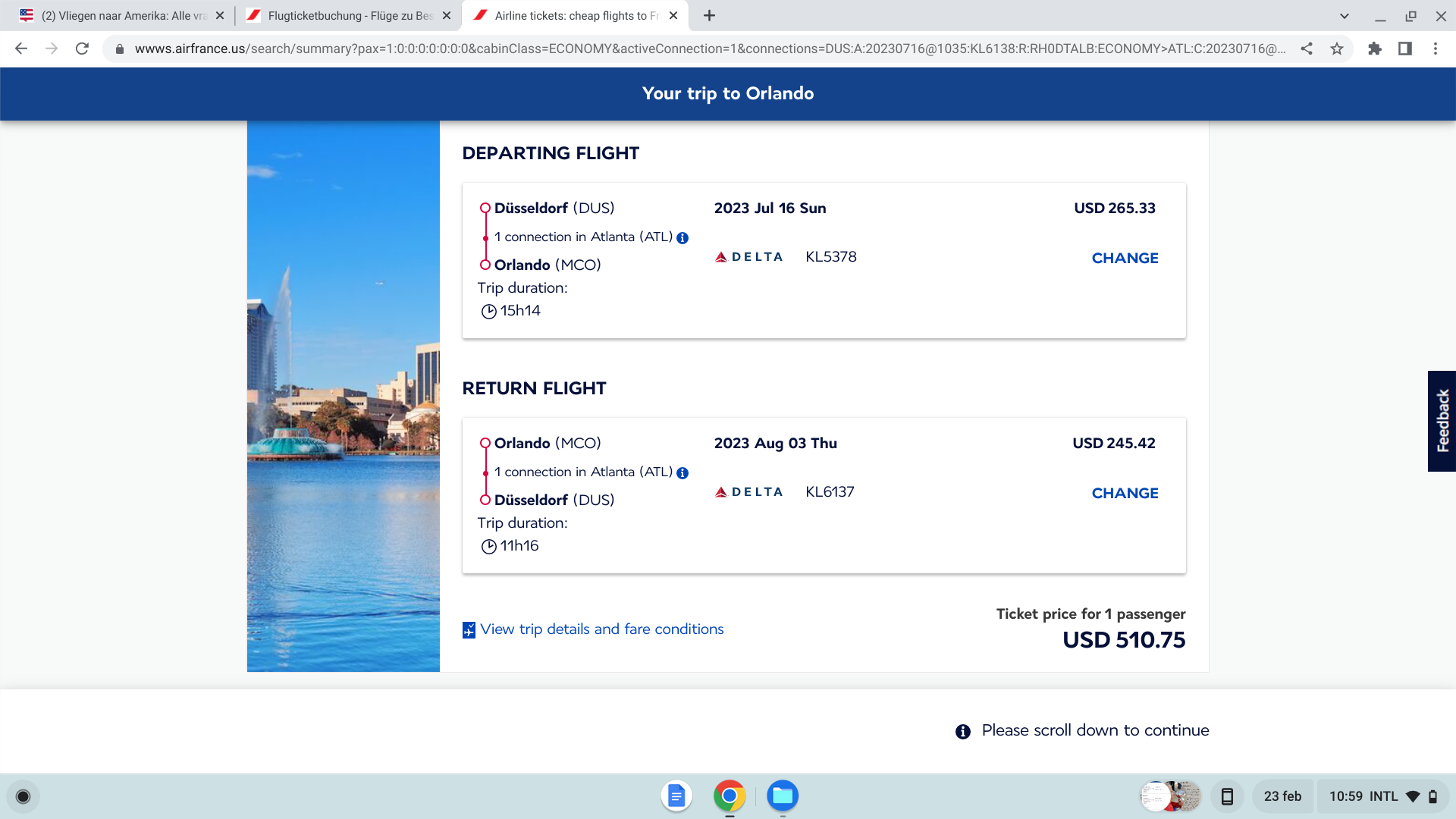 Graag gedaan! En erg nette prijs!!dmoorc schreef: ↑20 feb 2023, 17:19Met de tip van Astatic (bedankt daarvoor) via airfrance.us de vlucht met Delta kunnen boeken voor 2 juli heen, en 22 juli terug Dusseldorf-Orlando over Atlanta, voor 3p. Incl 23kg bagage per persoon en stoelreservatie…. En dit voor slechts 1748 euro (582/persoon)