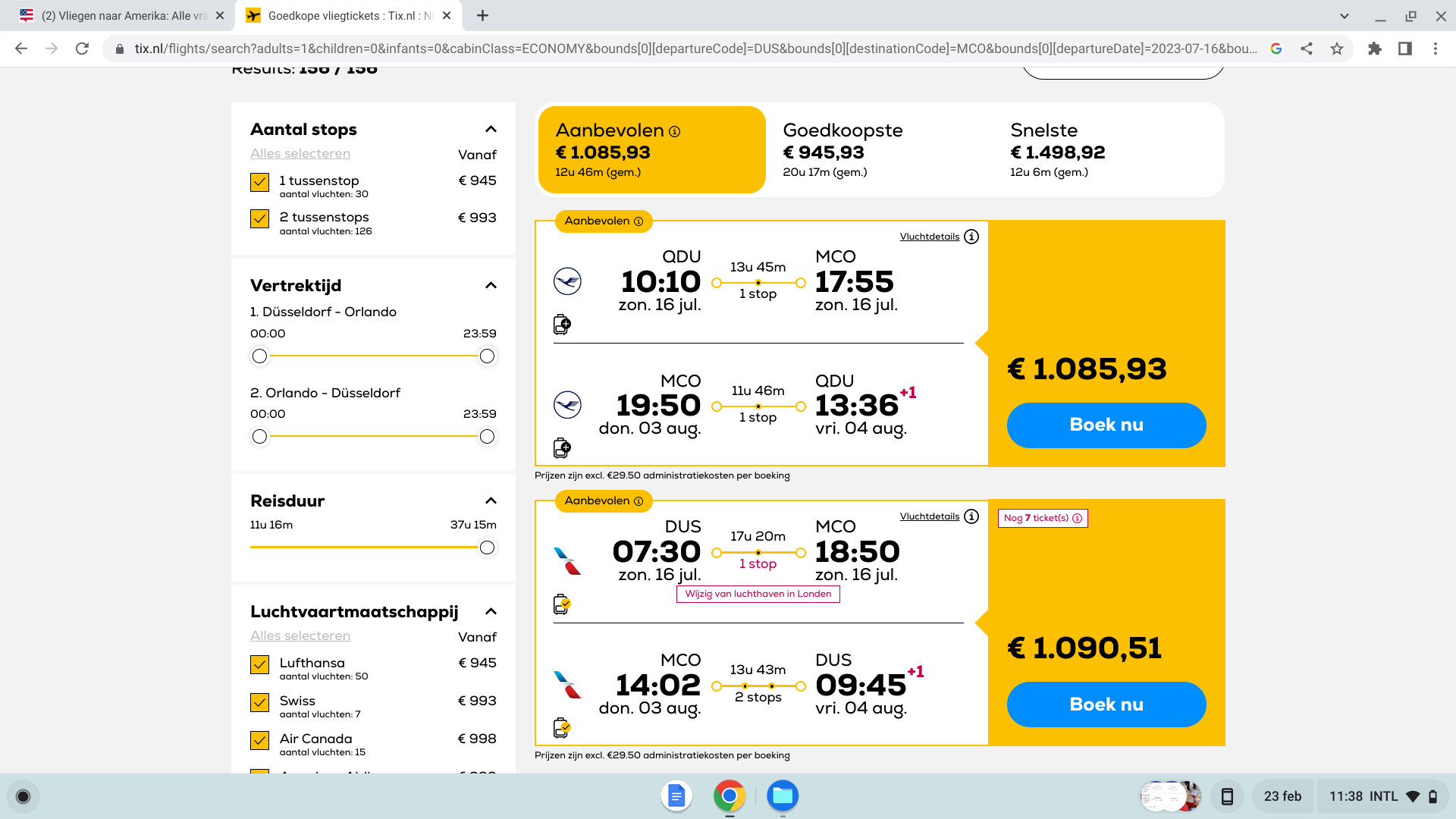 Ik hou de buitenlandse website van vliegtuigmaatschappijen in de gaten en probeer wat te wisselen met Adam, Brussel en Dusseldorf.