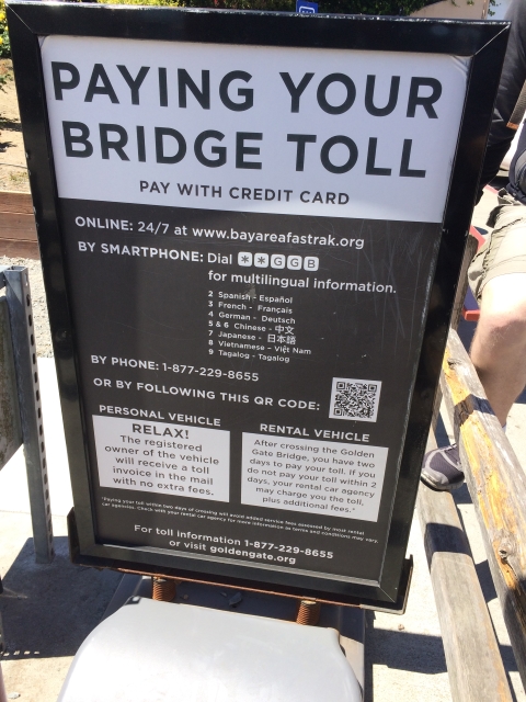 Afgelopen mei zijn we 2x via de Golden Gate Bridge San Francisco binnengereden en heb ik 's avonds online de gegevens ingevuld en werd de tol keurig van de CreditCard afgeschreven.