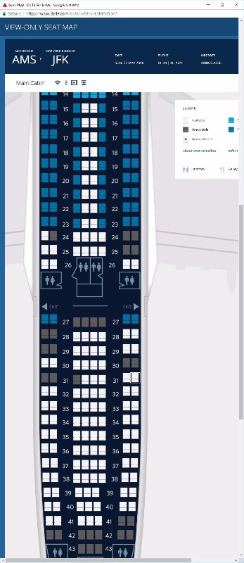 41 rechts heb ik gereserveerd. Net niet achterste rij.roelb schreef:Dat is ook waar. 27/5 naar New York, dus de DL49? Die zit echt niet vol, 25A+25B zijn de voorste normale (gratis te selecteren) stoelen die beschikbaar zijn.