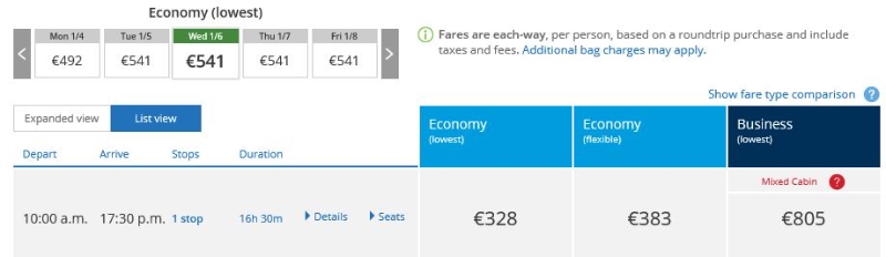 Daarnaast zijn er op Lufthansa prijzen tussen de €557 en €568. Ook hier geldt weer: wat is wijsheid. Het is niet makkelijk als je zoiets voor het eerst doet