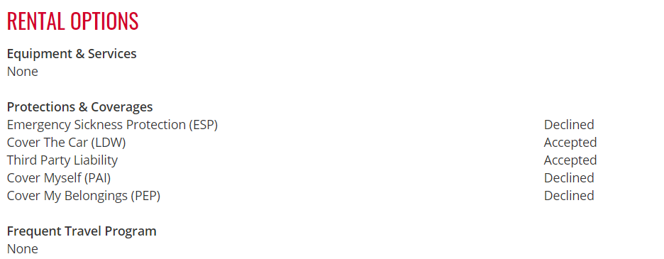 verderop staat nog dit, waar staat dat ik een aantal zaken declined heb maar dit heb ik niet (bewust) gedaan wellicht dat ik deze eerder genoemde verzekering boek voor 2.50 usd per dag