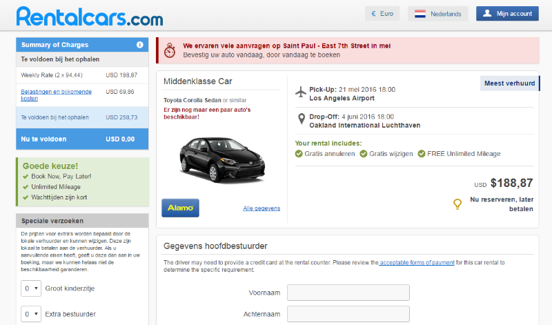 Alamo is maar 30 euro duurder op expedia.nl, dus dat is mij het besparen aan eventueel drama wel waard. Alleen staat op die website weer niet erbij of one-way fee is inbegrepen van LAX naar Oakland Int. Airport (Dus LA naar SF). Iemand daar weet van? Zag hier en daar staan dat er geen one way fees zijn in CA, maar geldt dat voor alle bekende verhuurders via al die brokers? Dat was me even niet duidelijk. Op de UK website van Alamo melden ze dat er in CA geen one way fees zijn. Echter wordt daar geen woord meer over gerept op de Amerikaanse website.