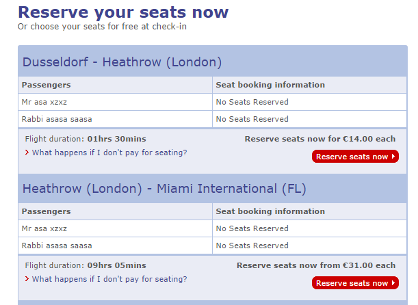 Mag ik vragen wat de kosten waren voor het reserveren van stoelen. Op de site van BA is het niet geheel duidelijk of wij moeten betalen of niet. Wij reizen met kind van 5 jaar, zag dat reizen met kinderen jonger dan 2 jaar in ieder geval stoelen gratis te reserveren zijn.Wij hebben in 2012 via ebookers geboekt bij BA en konden gewoon inloggen op de website van BA. Net als wat Harry zegt konden wij ook vooraf stoelen reserveren tegen betaling.