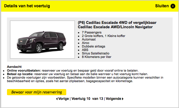 op onze reservatie staat LFAR Cadillac Escalade of gelijkwaardig