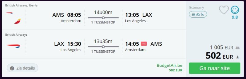 Ik ben heel blij met deze prijs en ook met de vluchttijden.
