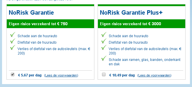 Dan heb ik de door hen voorgestelde verzekeringen toch niet nodig? Ook bieden ze me nog een annuleringsverzekering aan voor €10, terwijl in de voorwaarden staat dat "You may cancel your reservation any time prior to pickup and receive a full refund (free of charge up to 48 hours before pickup).""Lijkt me dus ook niet nodig?