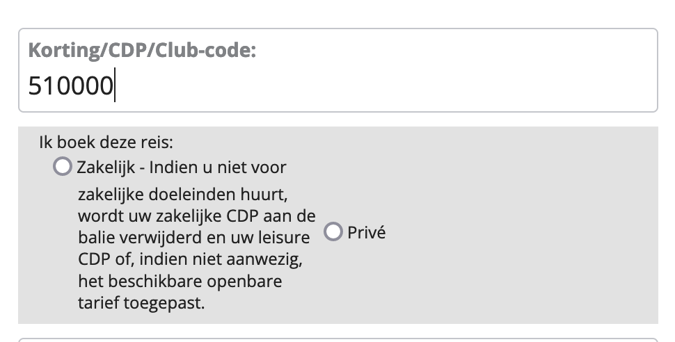 Nog een poging gedaan op Hertz.nl met de code: 510000.