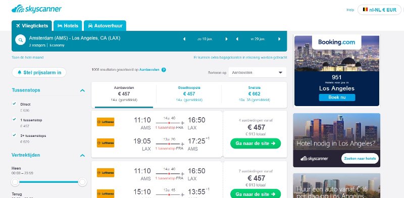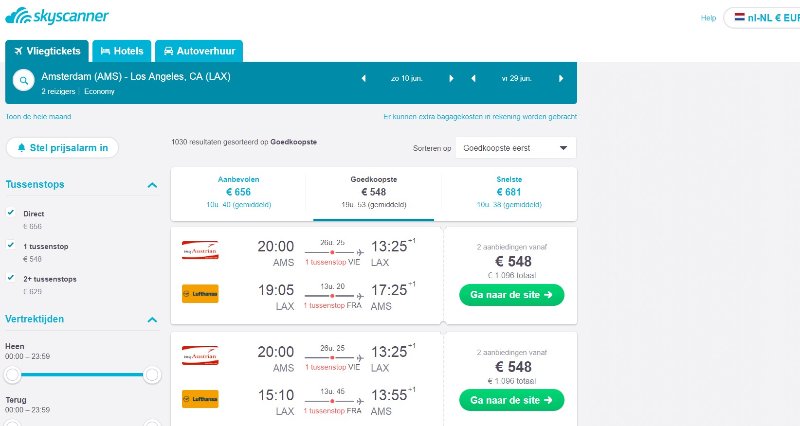 Probeer ook de verschillende landen bv Skyscanner.nl / .be