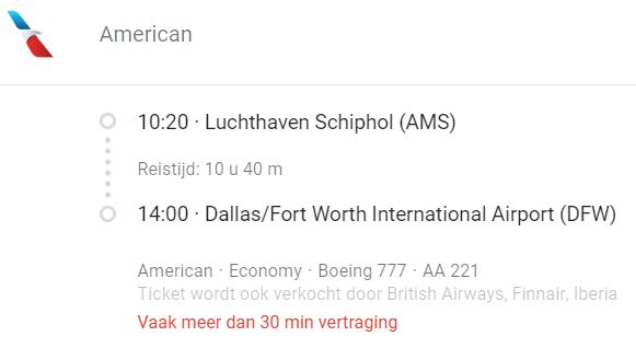 Vrijdag is het eindelijke zo ver. Op naar de States. Nu las ik op Google Flights het volgende over onze vlucht via Dallas:
