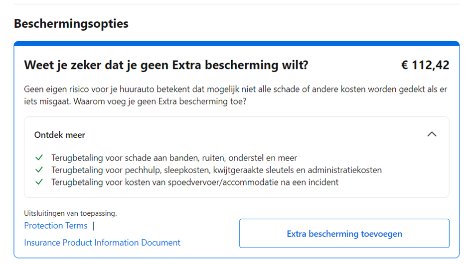Maar de grote vraag is: heb ik het extra verzekeringspakket nodig? Mijn eigen verzekeraar geeft aan dat het op geen enkele manier gedekt is vanuit de reisverzekering en verwijst door naar de autoverhuurder...