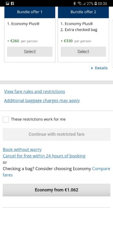 Jep. Dus ik denk dat hier meer aan de hand is en dat het niet direct bij United is geboekt.derksen_peter schreef:Volgens mij moet je bij United juist zeer uitdrukkelijk bevestigen dat je voor het basic economy tarief kiest?