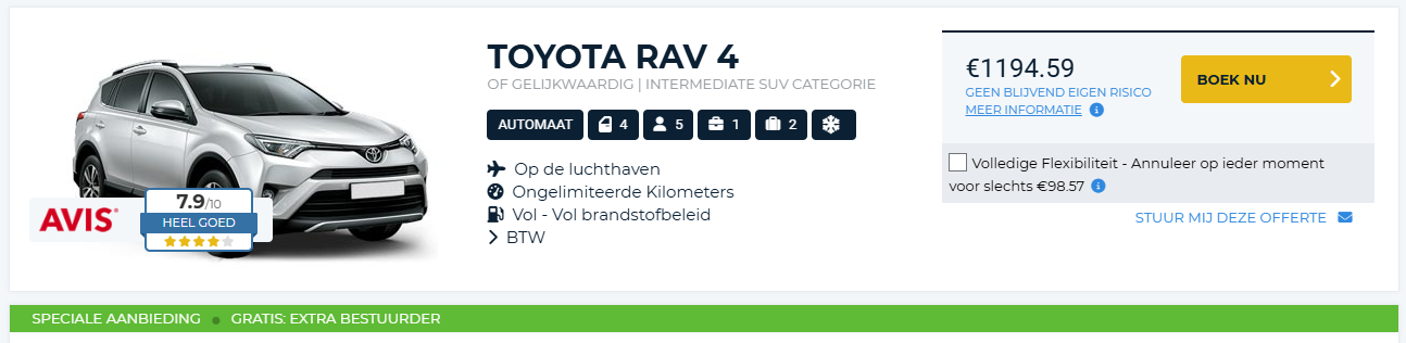 Is dat ook altijd een prijs incl 2e bestuurder?Felicitas schreef: ↑29 dec 2024, 14:29@jvans1979 Wij hebben al een paar keer via autoeurope.nl geboekt. Tot nu toe naar tevredenheid. De website is overzichtelijk en als je een boeking hebt gemaakt kan je je bestaande boeking online zeer gemakkelijk wijzigen als je een goedkopere aanbieding ziet. Het verschil krijg je snel weer terug op je rekening. Voor onze komende vakantie heb ik onze boeking al meer dan vijf keer gewijzigd. Ik check bijna iedere dag de prijzen. Op dit moment is het weer wat hoger, maar het kan goed zijn dat het in januari weer wat zakt.