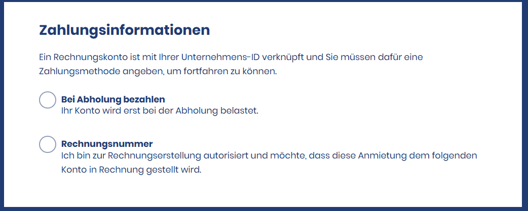 Optie 1 is betalen bij ophalen van de auto. In dit geval voer je geen betaalgegevens in. Hierdoor kan je dus zonder risico niet komen opdagen en deze reserveringen dus bijv. als back-up optie gebruiken. De aan te bevelen optie.