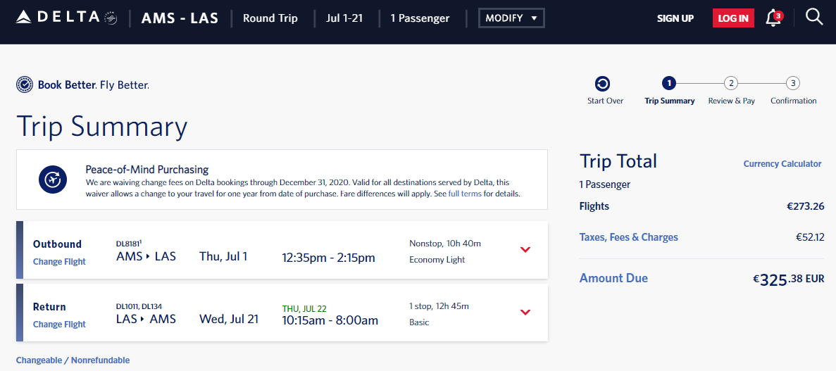 Voor ons was dit dus de reden om via Delta te boeken en niet via KLM, want daar moesten de vluchten voor de zomer 2022 plaatsvinden, en voor ons lukt het ook enkel maar in de zomervakantie.