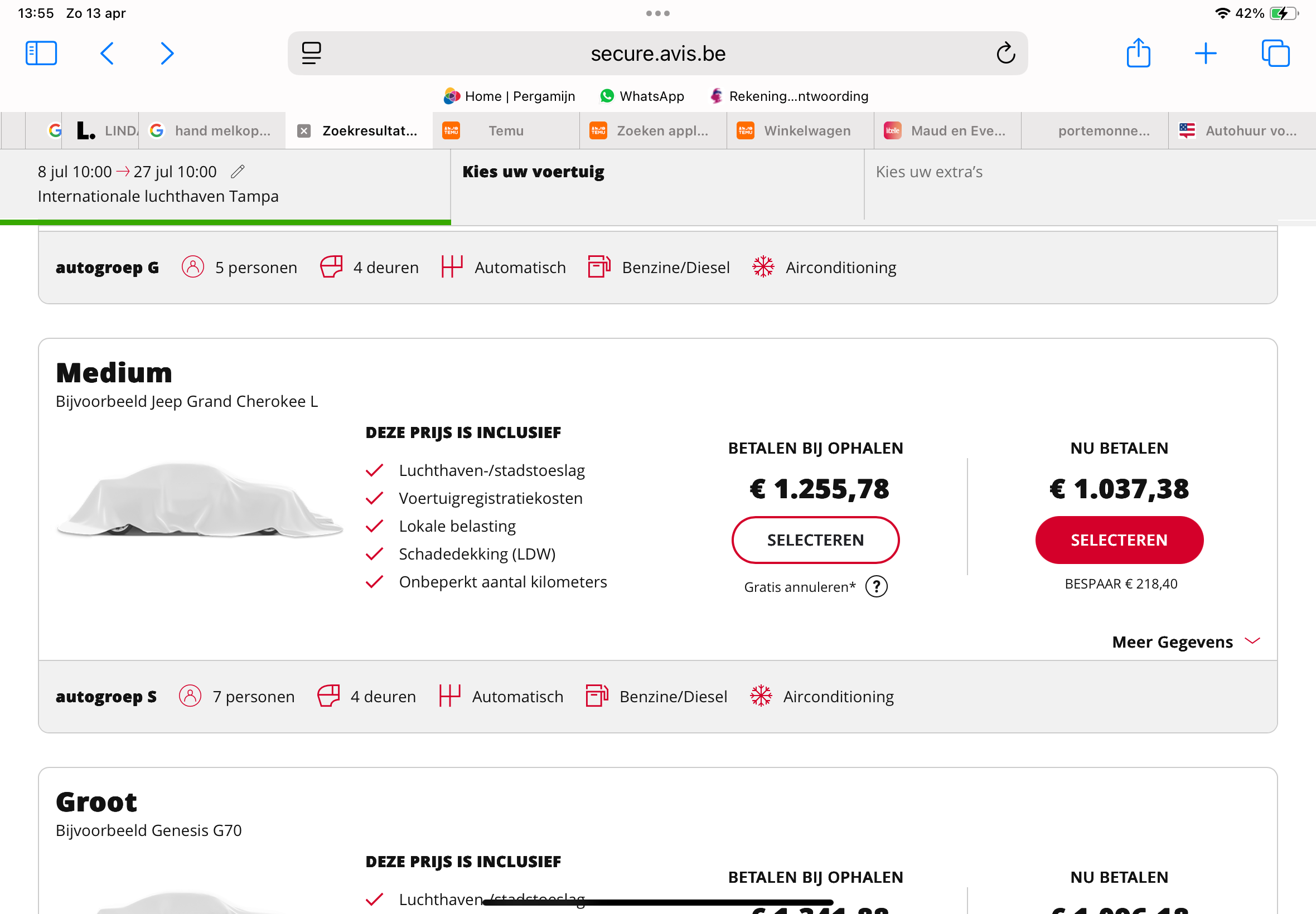 Ik checkte net nog eens de autohuur voor 4 weken in juni.