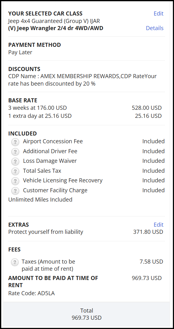 We gaan ook in 2026 weer naar Amerika. Ik heb nu een 4x4 geboekt bij Hertz Curacao met de amex codes en zie voor het eerst dat het totaal op mijn reservering hoger is dan wanneer ik zelf alle kostenposten bij elkaar op tel: $ 932,54. Is dat jullie ook eerder overkomen of opgevallen?