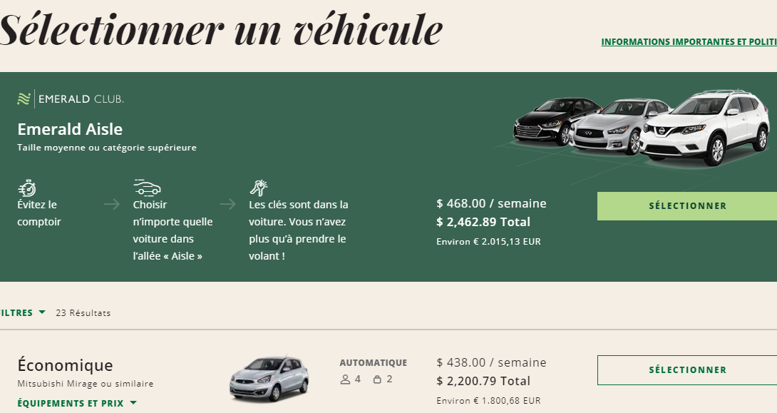Ik heb zowel een backup boeking voor standard SUV bij Hertz als National staan. Als die er wel staan neem ik ze mee op mijn EC Executive of PC boeking