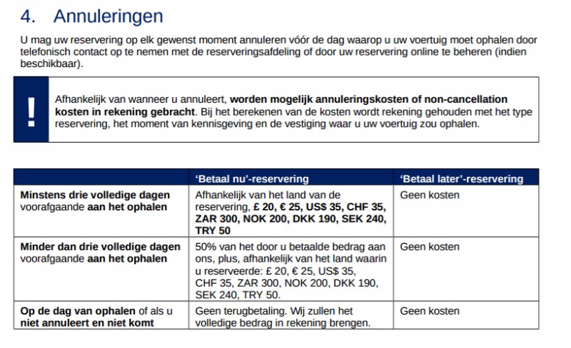 Dankjewel. Dat eerste deel had ik zelf ook gevonden maar dat annuleren deel niet. Met "betaal later" zit je dus altijd goed. Die CDW ziet er gewoon normaal goed uit toch? Wij hebben vorig jaar ook bij Budget gehuurd maar ik kon mij dat zinnetje "gedeeltelijk" niet meer herinneren.