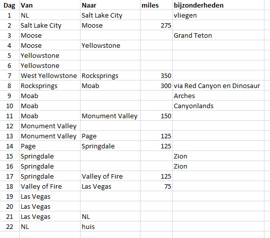 Mijn idee is om op Salt Lake City te vliegen, of is volgens jullie Las Vegas handiger? Onze reisperiode is de maand juni en het aantal dagen +/- 24. We willen een auto huren en van motel naar motel rijden.