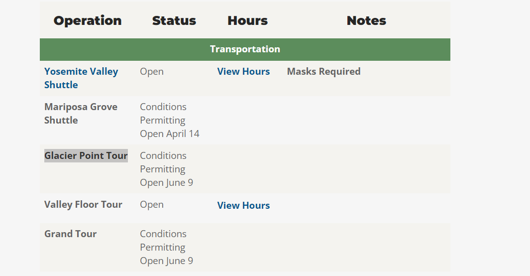 Inmiddels staat hier Glacier point tour: Conditions permitting open june 9. Dus het enkeltje omhoog lijkt het niet te gaan worden eind mei.
