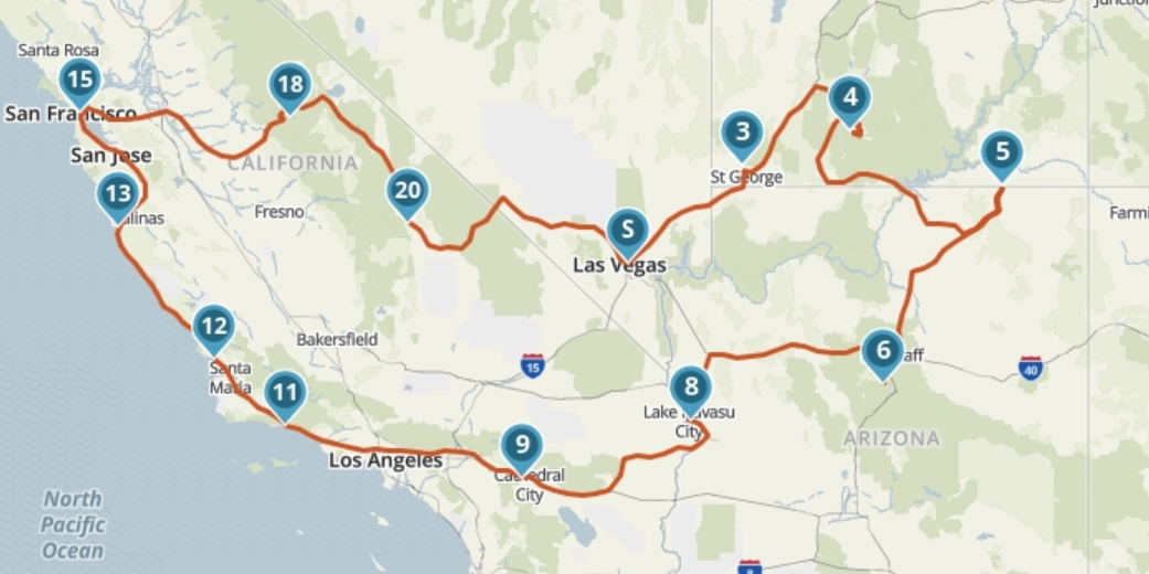 We hebben deze route voor een deel al 10 jaar geleden gemaakt, maar we wilde hem 10 jaar later nog een keer doen met (hopende tzt) ons gezin. Uiteindelijk is het ons gegund om 1 kindje te krijgen, en dus staat onze afspraak om terug te gaan! We hebben dus de grote parken zoals Bryce, Zion en de grand canyon al gezien en we hadden inderdaad het idee dat dit voor Emily (de dochter in kwestie) niet heel leuk zou zijn als we ook al naar bijvoorbeeld Yosemite gaan. Maar dit is voor ons dus ook meteen een beetje een blinde vlek omdat we deze parken vorige keer redelijk snel gedaan hebben en we het dus erg lastig vinden om in te schatten wat er voor haar in de parken te doen is, anders dan diertjes spotten en wandelingen maken.