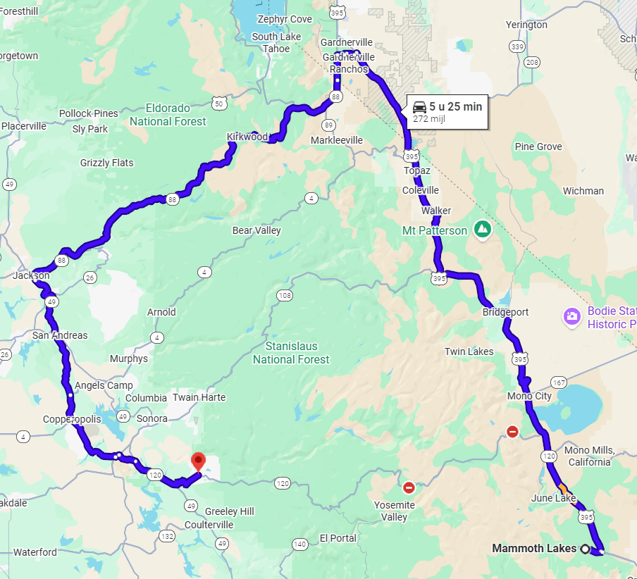 De vraag is wel of we Mammoth Lakes zouden moeten aanhouden als tussenstop. Is echt een wintersport gebied als ik het zo zie rond die tijd. Wellicht dat een andere tussenstop dan beter is, bijv. South Lake Tahoe al lijkt dat ook vooral wintersport in die periode.