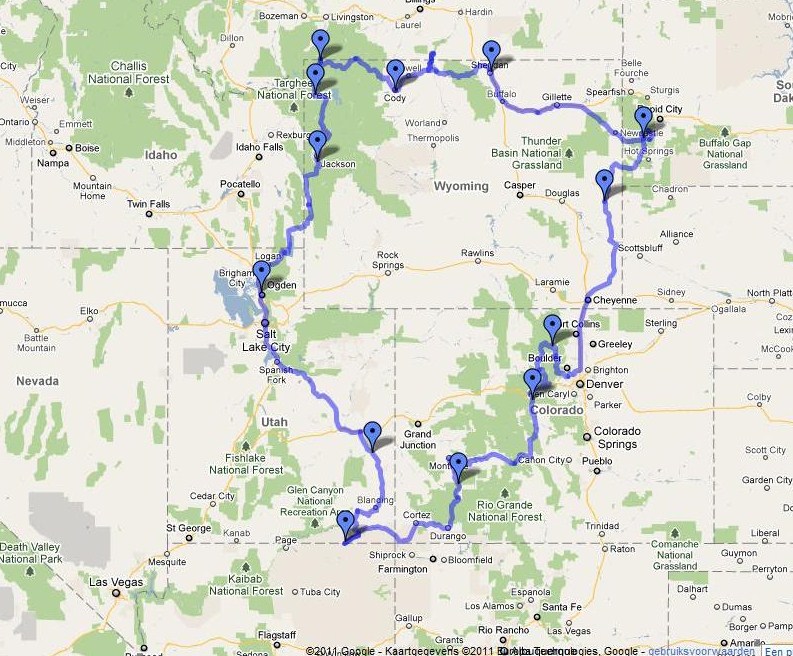 Als je zoveel tijd hebt, kun je gerust een rondje Denver - Denver doen met uitstapjes naar Zion / Bryce (voor als je er nog niet geweest bent) en Monument Valley. Die laatste hadden wij vorig jaar niet gezien, dus zijn we nu deze route van plan: