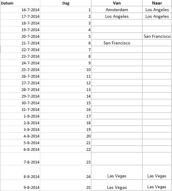 En schrijf de route per dag op; het is verwarrend als dezelfde dag er twee keer in staat. En dan kopiëren in je topic, dan kunnen we eventueel ook nog quoten of kopiëren.