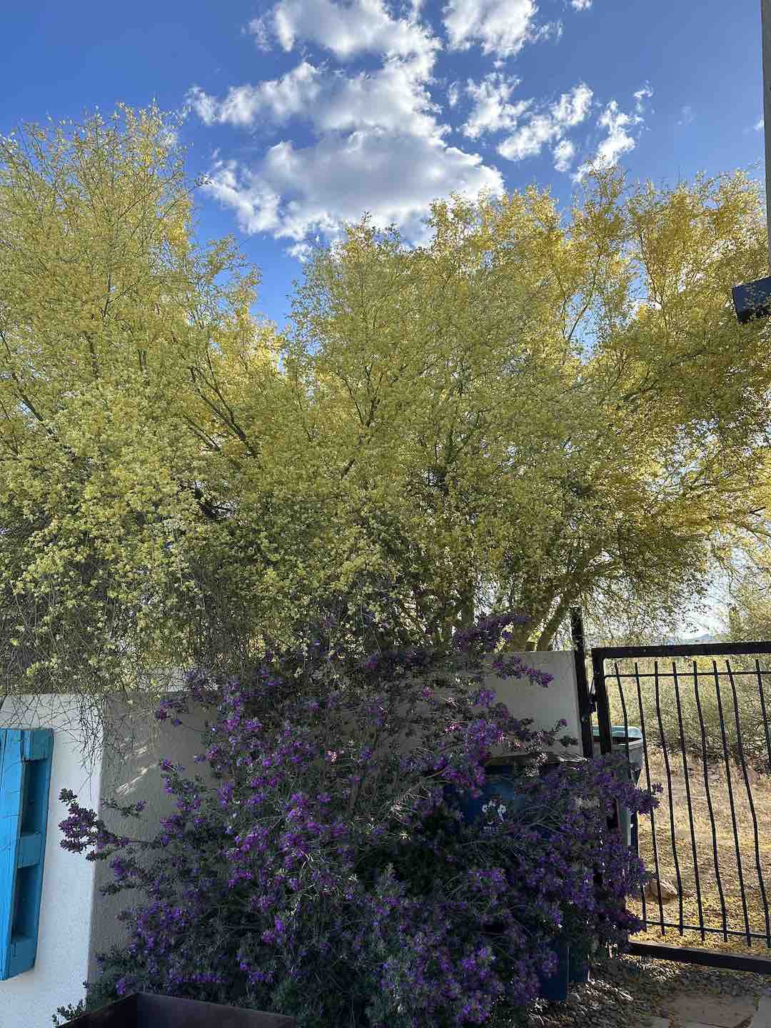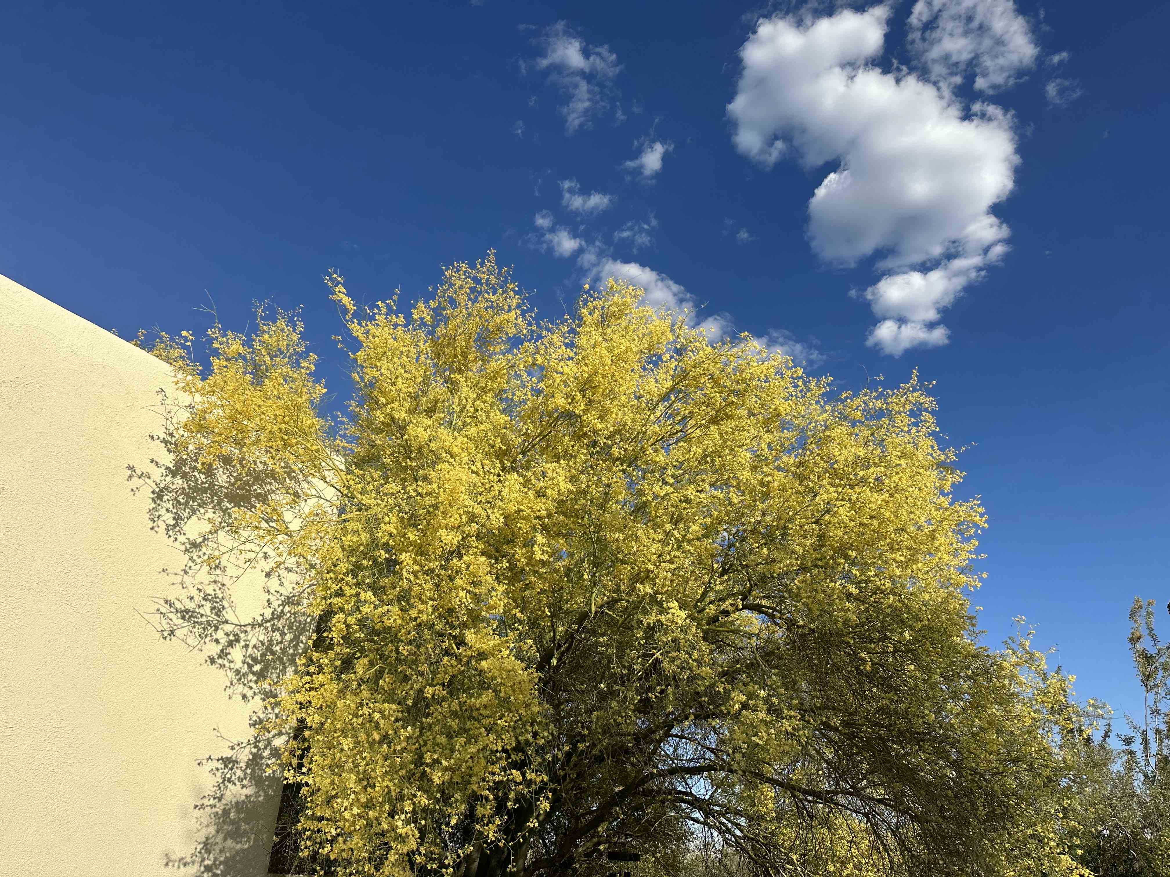 Ook onze boom aan het muurtje bij de pomp staat nu in volle bloei