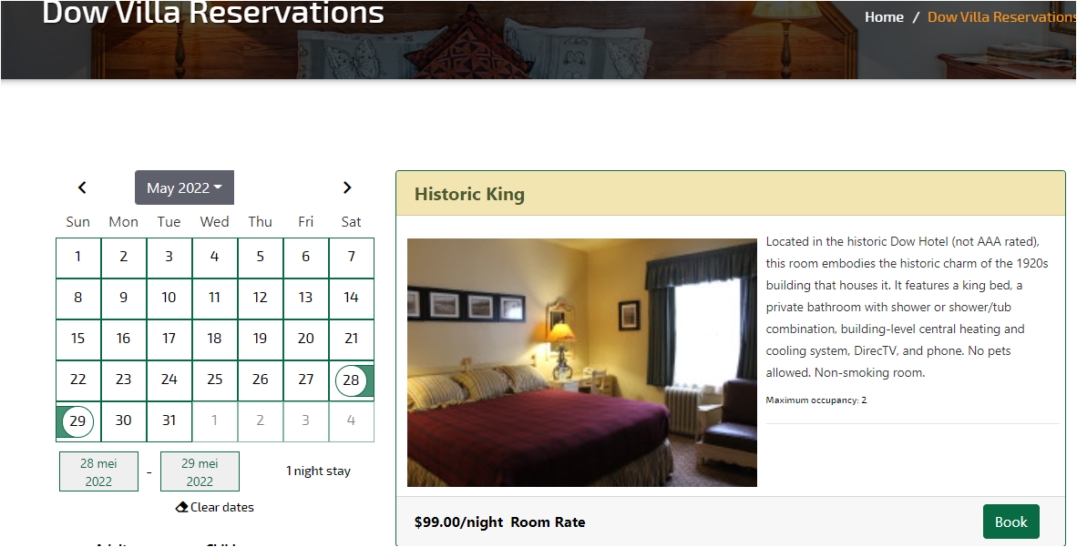 Voor de Dow Villa motel zie ik op 28 mei wel beschikbaarheid. Heb je op www.dowvillamotel.com gekeken? Je kunt geweldig leuk en lekker ontbijten in de straat er tegenover.