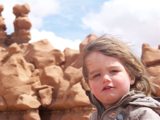 Onderweg van Fruita naar Moab kom je langs Goblin Valley State Park. Je moet een stukje de 24 af, maar het is een superleuk park. We hebben daar een paar uur gewandeld en Santiago heeft daar flink geklommen. Heel erg leuk.