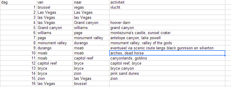 Je zou ook in Phoenix kunnen beginnen, en dan Las Vegas tussen Zion en DV plannen. Dan heb je meer tijd voor de GC, en niet die lange rit van Zion naar DV - hoewel dat wel te oden is in 1 dag. waarom zou het trouwens stom zijn om daar een ancht LV te plannen? Je rijdt er toch langs.