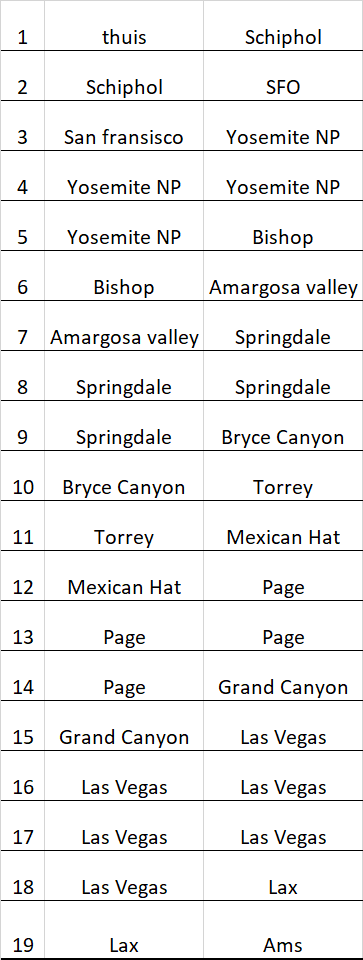 De route starten vanuit la naar grans canon is zoals eerder gezegd geen optie want dan komen we in het weekend in las vegas aan.