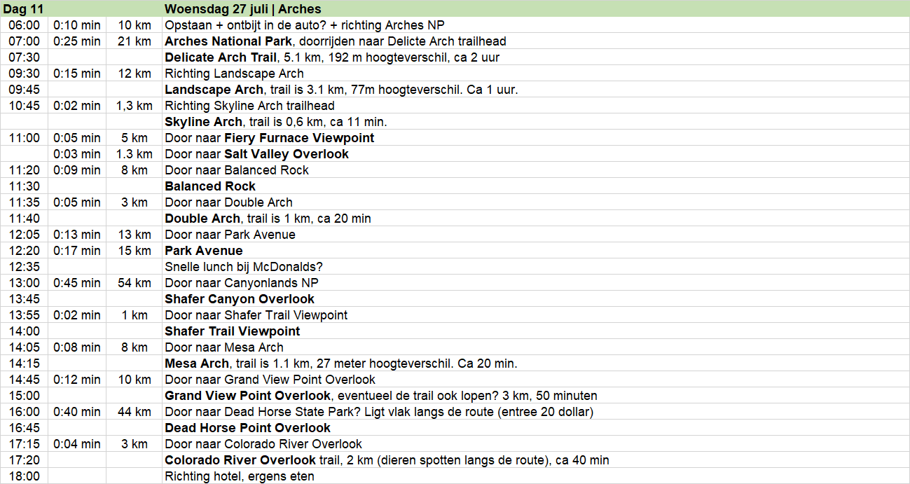Mocht je toch nog iets aan willen passen, laat dan Moab vallen. Neem daar een andere keer meer tijd voor, en bij voorkeur in een minder hete periode.