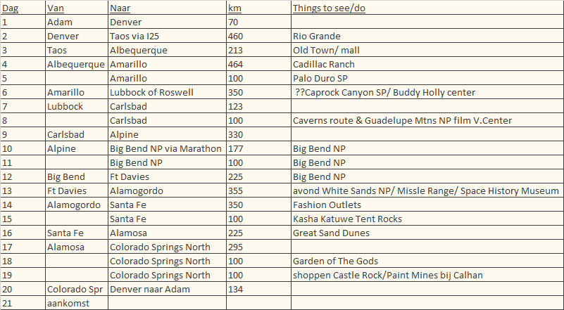 Het idee is om volgend jaar mei te vliegen op Denver en dan via New Mexico een ander deel van Texas mee te nemen in de planning.