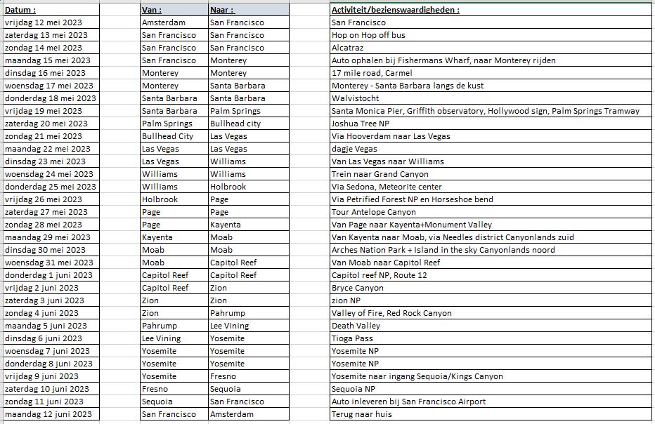 Re: Schema reis San Francisco - Los Angeles - Las Vegas - San Francisco