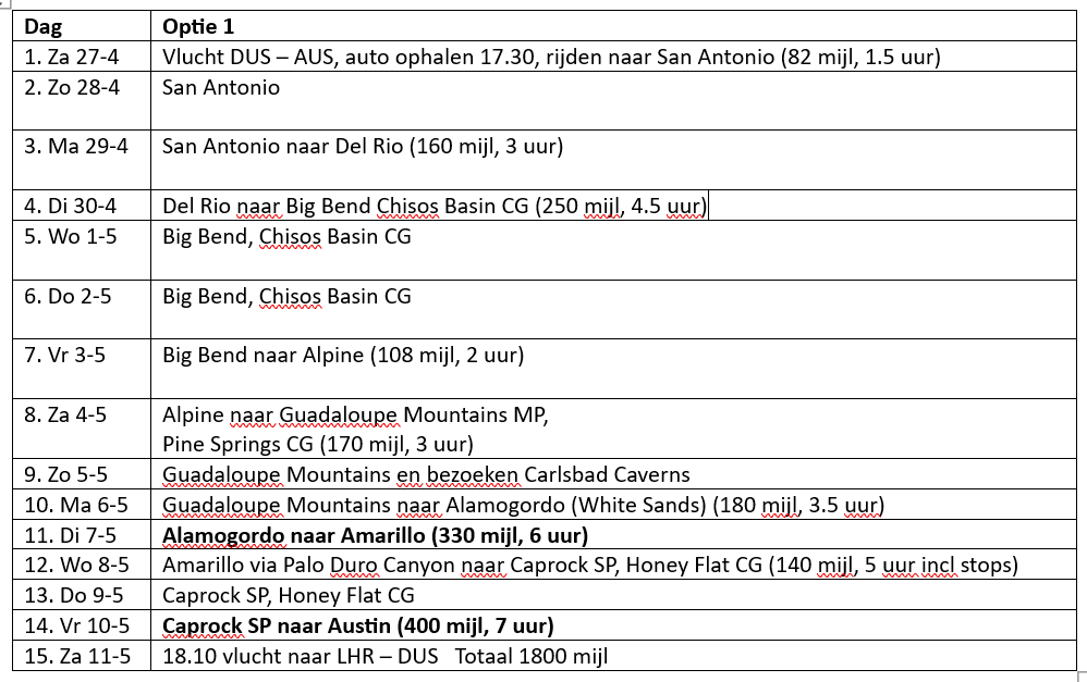 In 2022 hebben we een fantastische rondreis gehad van bijna vier weken door Colorado, South Dakota, Wyomin en Utah. Eigenlijk wilden we pas over 2 jaar weer naar de VS gaan maar afgelopen week zagen we goed geprijsde tickets naar Austin met BA voor de meivakantie. Toen hebben we spontaan geboekt. We hebben inmiddels op basis van de verschillende routes en tips die we tegenkwamen op dit forum een rondje gepland. In totaal ongeveer 1800 mijl, maar er zitten maar 2 echte reisdagen bij. Net als tijdens onze vorige VS reizen gaan we voor een mix van kamperen in een tent als we in parken zijn en hotels (in steden en bij tussenplaatsen).