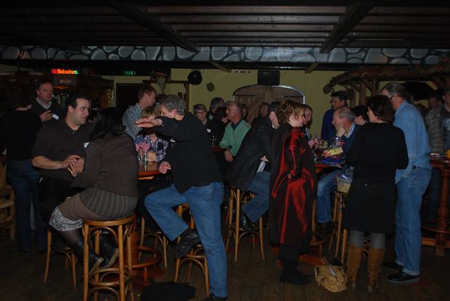 Zoals veel anderen ook al zeiden was het eigenlijk veel te snel voorbij. Mensen die je graag had willen spreken waren al verdwenen voor we daar aan toegekomen waren. In het begin hebben we een rondje gemaakt en veel handen geschud, maar op een gegeven moment bleven we steken. Het valt ook niet mee om in zo'n grote groep iedereen te spreken, of zelfs maar te zien. Zo zag ik bijvoorbeeld Bart en Iris - die ik allebei graag had willen spreken - pas toen ze hun prijzen in ontvangst kwamen nemen. We hebben toch nog aardig veel nieuwelingen gesproken. Het was voor ons de 3e keer en dat betekent dat we wel wat mensen van gezicht kennen maar ook lang niet iedereen van de oudgedienden al eens gesproken hebben.